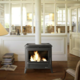 Fogão a lenha Modena – Todo em ferro fundido antracite – Grande visibilidade da chama – Pós-combustão: injeção de ar pré-aquecido na câmara de combustão. A entrada de ar adicional pela parte traseira destrói os hidrocarbonetos a alta temperatura. A combustão é completa e a poluição reduzida – Sistema de vidro limpo – Combustão prolongada durante 8 horas – Regulação manual – Ligação traseira ou superior Ø 150 mm.