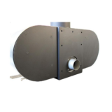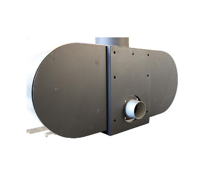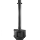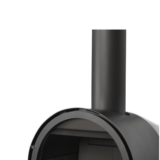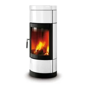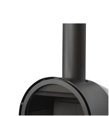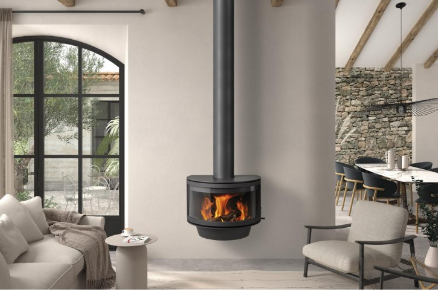 Lareira metálica frontal Rocal Ronde com potência de 9,7 kW e rendimento de 89% com dupla combustão e combustão estanque.